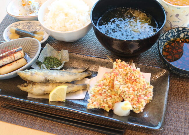 常磐ものメヒカリなど地元の味を楽しめるセットメニューをレストランアクアクロスで期間限定販売します。※一日限定10食です。