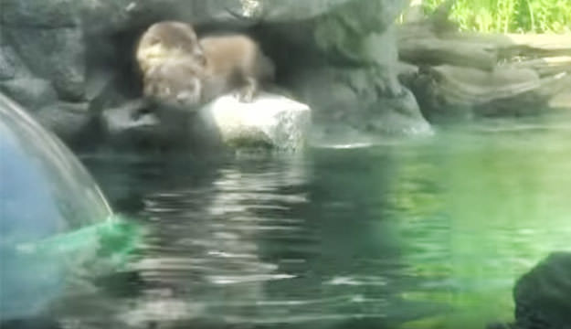 2015年5月にオーストリアからやってきたユーラシアカワウソ。水槽のガラス近くに来ると妙な立ち泳ぎをします。