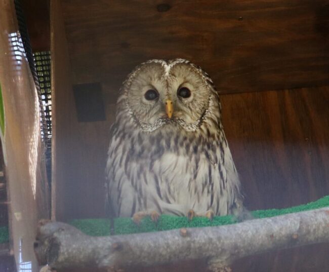 2023年4月12日 「わくわく里山・縄文の里」フクロウ展示再開のお知らせ 「わくわく里山・縄文の里」コーナーのフクロウについて、鳥インフルエンザ対策等を考慮した獣舎改良のため展示を中止していましたが、展示を再開いたしましたのでお知らせいたします。